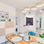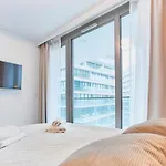 Az 68 m^2-es Wave Family Apartment - Sea View apartman tengerparti szállást kínál Miedzyzdroje egy parti övezetében. Az apartman egy teraszt kínál, illetve erkélyt, síkképernyős műholdas TV-t és klímaberendezést biztosító szobákat.